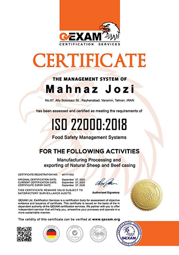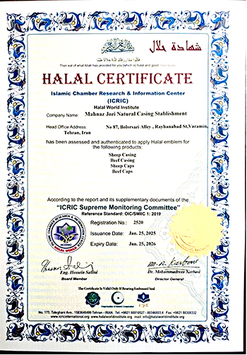 Iran Casing holds ISO 9001 and ISO 22000 quality certifications. The company is also highly committed to Halal standards, and all our products are certified Halal, ensuring the trust of Muslim consumers worldwide.