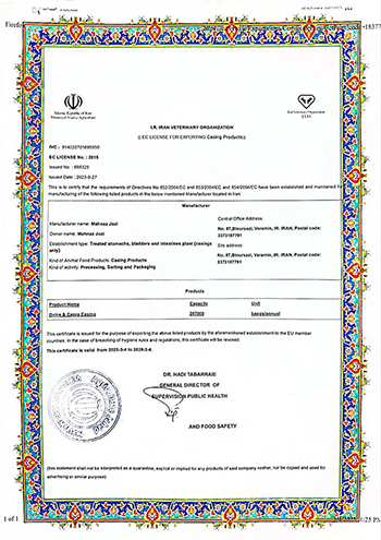 In addition, Iran Casing strictly complies with international requirements and hygiene standards, including EU, Eurasian, and Iranian veterinary regulations. We also uphold Halal requirements, ensuring that every product is produced with the highest sensitivity to cleanliness, health, and food safety.
