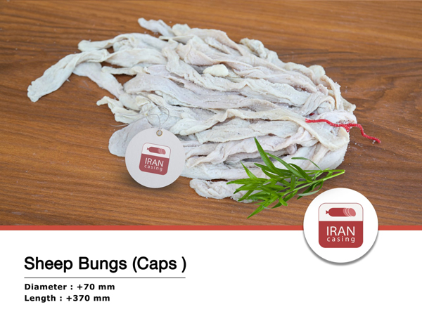 Sheep bungs are the cleaned end part of the intestine. Their diameter (caliber) ranges from 55 to 95 mm, and their length varies from 25 to 60 cm. Sheep bungs are widely used in the production of salami and Scottish Hough.